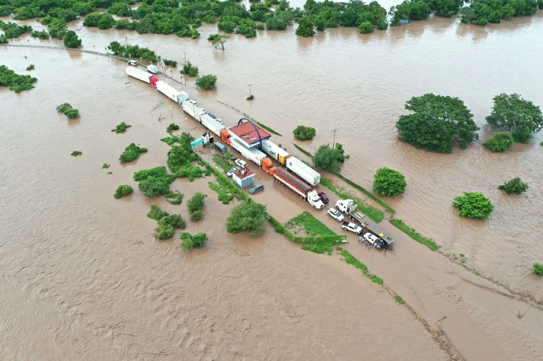 La carretera Tepic-Villa Unión siguió intransitable al salirse de su cauce el río Acaponeta. Hay miles de damnificados en todo el norte del estado.