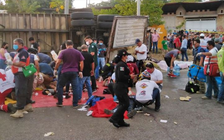 La tarde de ayer jueves se registró un fatal accidente en la carretera Tuxtla-Chiapa de Corzo, en Chiapas, que hasta el momento, ha dejado 54 migrantes muertos y más de cien heridos han fallecido, luego de que se volcara el tráiler en el que viajaban rumbo a la frontera de México y Estados Unidos.