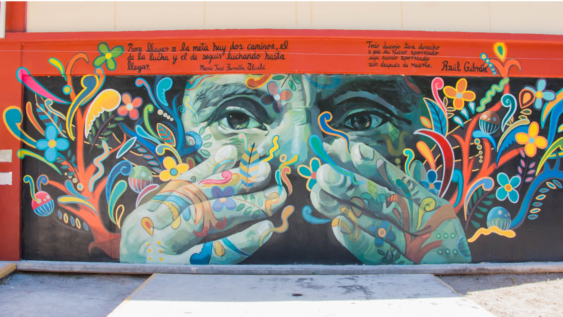 Los muros de este plantel de la colonia Buenos Aires, muestran ya el talento del pintor Adrián Takano y la inspiración literaria de Raúl Gibrán