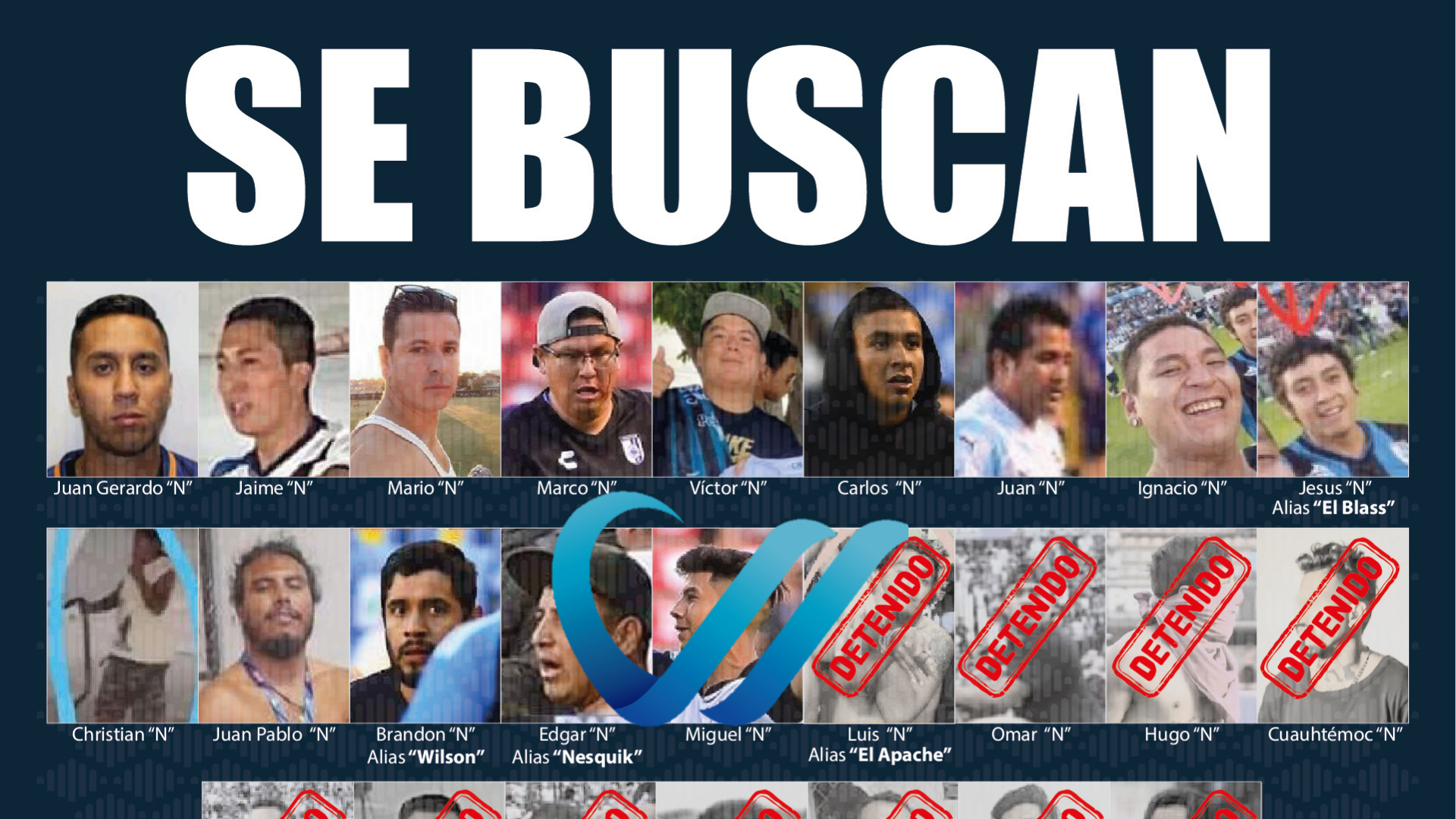 Mediante redes sociales, la dependencia solicitó a los ciudadanos colaborar para lograr la detención de estas personas. Piden comunicarse y proporcionar información que lleve a la localización de estos 14 sujetos, los cuales son buscados por el delito de homicidio en grado de tentativa, violencia en eventos deportivos y apología del delito.