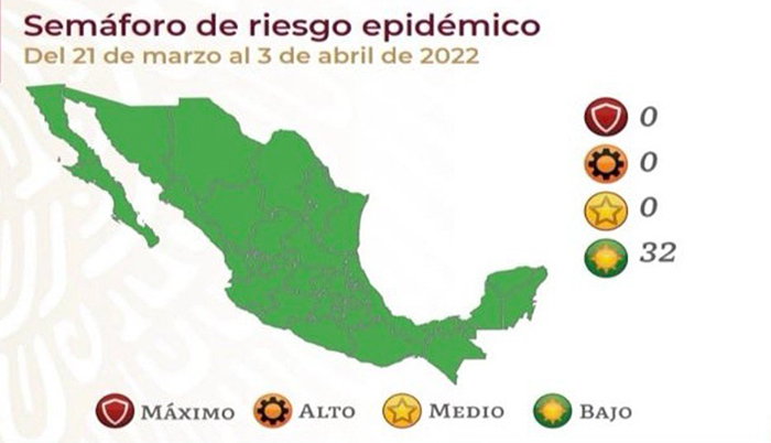 México se pintó de verde, y es que de acuerdo con las autoridades federales, del 21 de marzo al 3 de abril los 32 estados del país estarán en este color del semáforo epidemiológico por COVID-19.