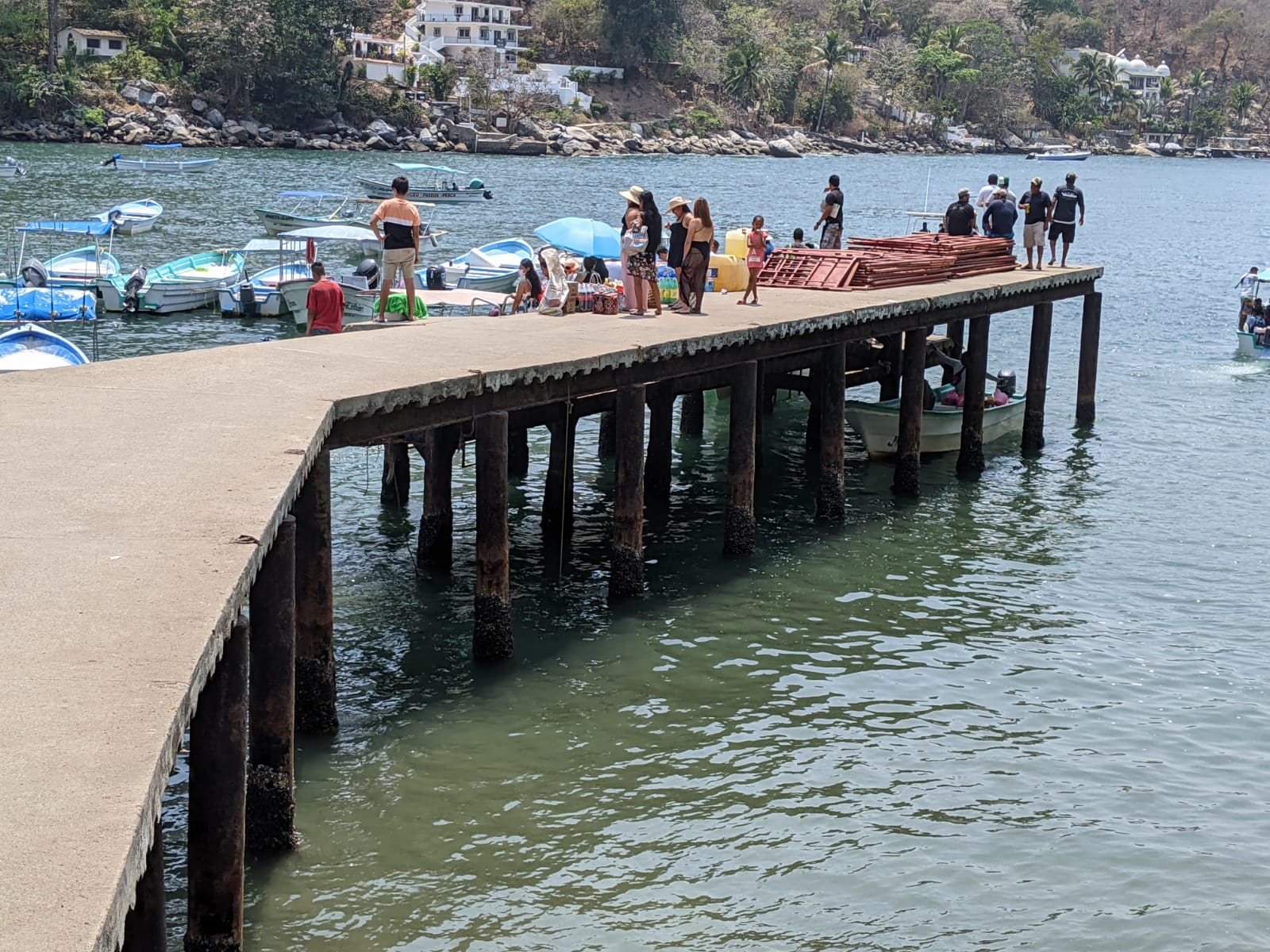 Este pequeño muelle recibe todos los días a cientos de personas, muchos de ellos turistas para que las pangas los lleven a las diferentes playas del sur de Jalisco.