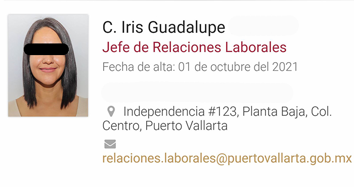 Iris Guadalupe ‘N’, era, hasta hoy, funcionaria de la actual administración municipal, liderada por Luis Alberto Michel Rodríguez y figura en la oficialía mayor, como jefa de relaciones laborales, desde el 1 de octubre del 2021, es decir, cuando inició el actual gobierno.