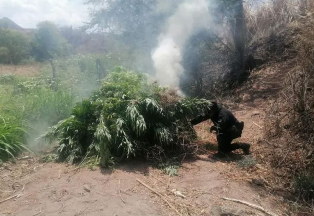 Los elementos aseguraron el plantío y luego procedieron a quemarlo, para destruir la droga.