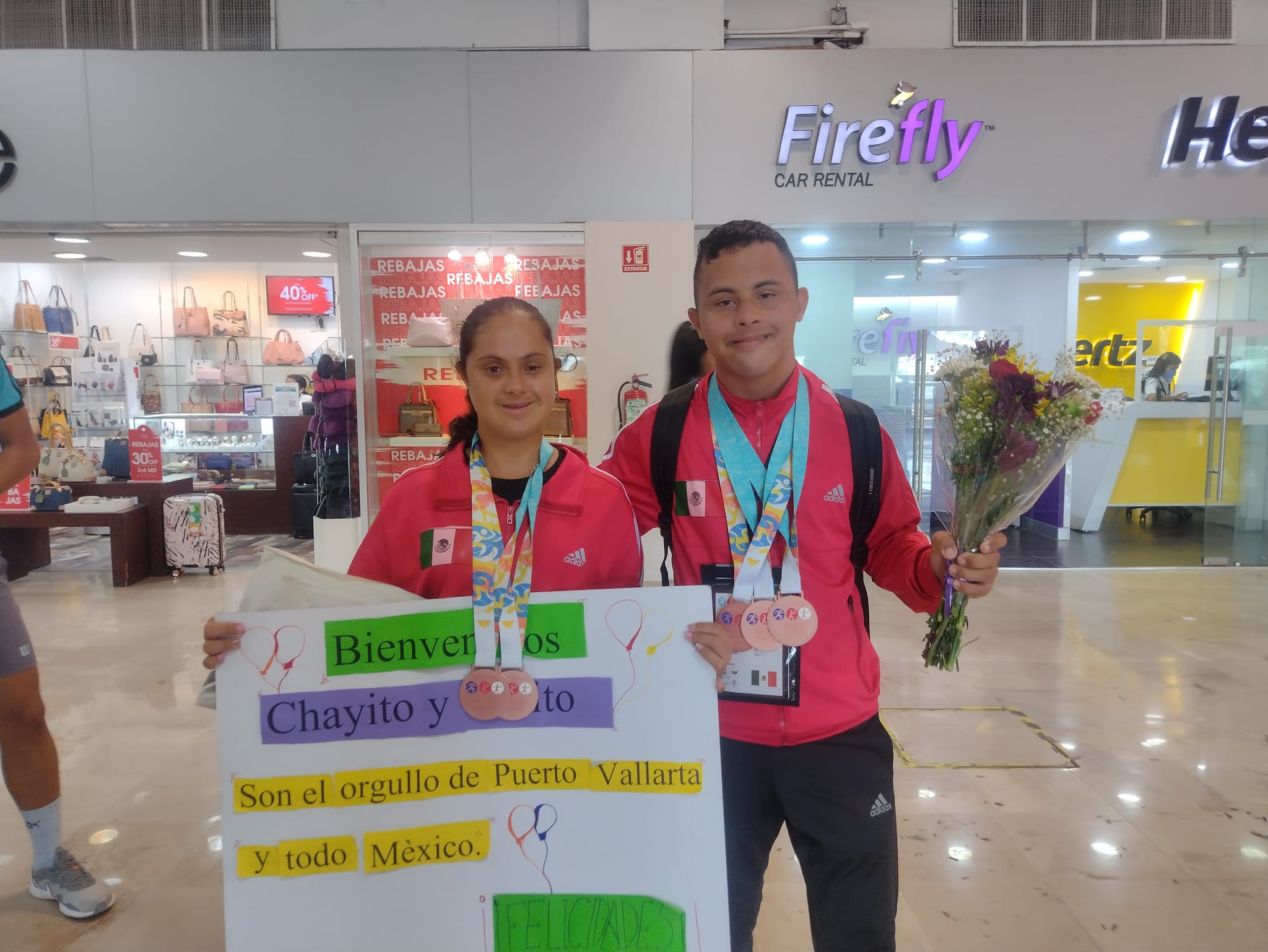 Este lunes por la tarde, los atletas Francisca Rosario Pelayo, mejor conocida como ‘Chayito’ y Antonio Lamas ‘Toñito’, regresaron a Puerto Vallarta luego de competir en el mundial de atletismo para personas con síndrome de down.