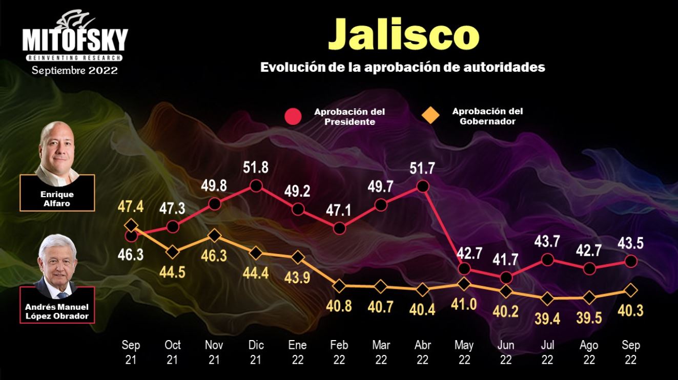 Sin embargo, estas cifras no significan que el gobernador, emanado de Movimiento Ciudadano, tenga mejores números, ya que Enrique Alfaro está peor evaluado, con apenas 40.3% de aprobación.