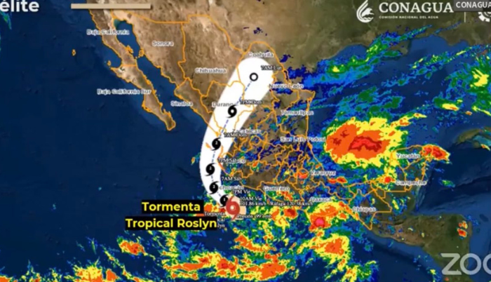 Durante la mañana de este viernes, la tormenta tropical Roslyn mantuvo su desplazamiento paralelo a las costas del Pacífico central mexicano.