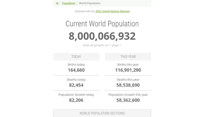 La ONU reconoce que el día de hoy, 15 de noviembre, la población mundial alcanzó la cifra de 8000 millones de habitantes.
