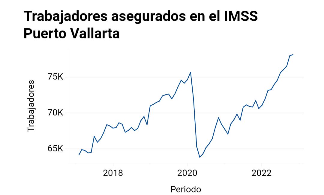De acuerdo a cifras del Instituto de Información Estadística y Geográfica de Jalisco (IIEG), de noviembre de 2021 al del 2022, en Puerto Vallarta los empleados asegurados por el IMSS aumentaron 8.99% (más de 6 mil personas).
