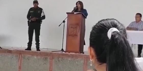 Y es que en el clip se puede ver a la mujer, de nombre Olga Narváez, subida en un estrado mientras da su discurso a los presentes en el colegio Misael Pastrana de Rivera.
