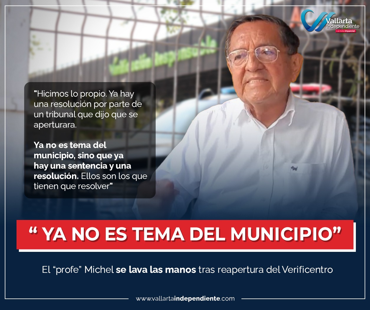 La operación del centro de verificación responsable ubicado en Puerto Vallarta ya no está en manos del Gobierno municipal, detalló el alcalde Luis Alberto Michel Rodríguez al ser entrevistado por Vallarta Independiente. De esta manera, el llamado “profe de 10” se lava las manos y le “pasa la bolita” al Gobernador Enrique Alfaro