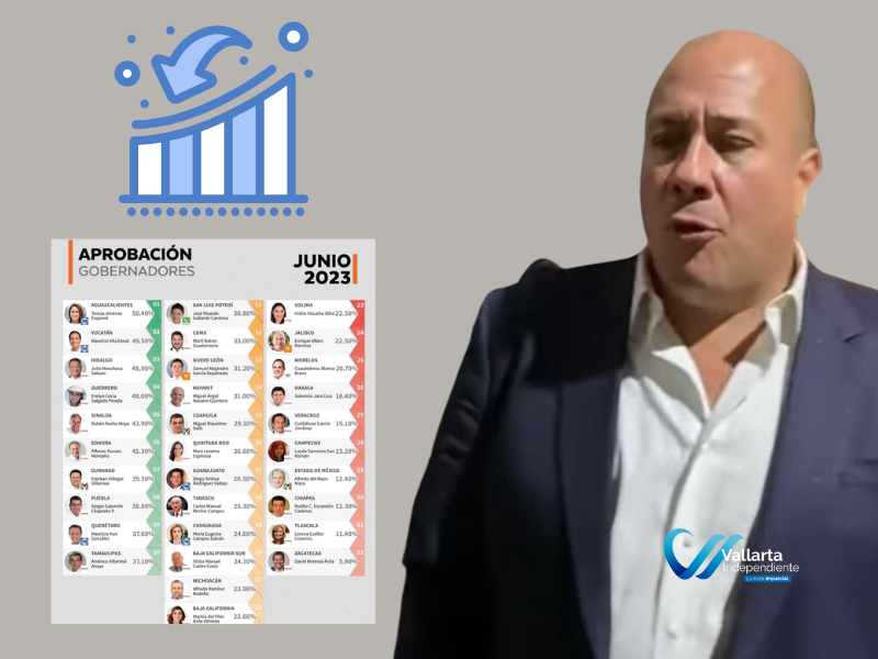 Alfaro se encuentra en la posición 24 de 32 y su porcentaje de desaprobación es del 68.6%. Estas son las cifras que obtuvo el actual gobernador de Jalisco, según esta casa encuestadora: