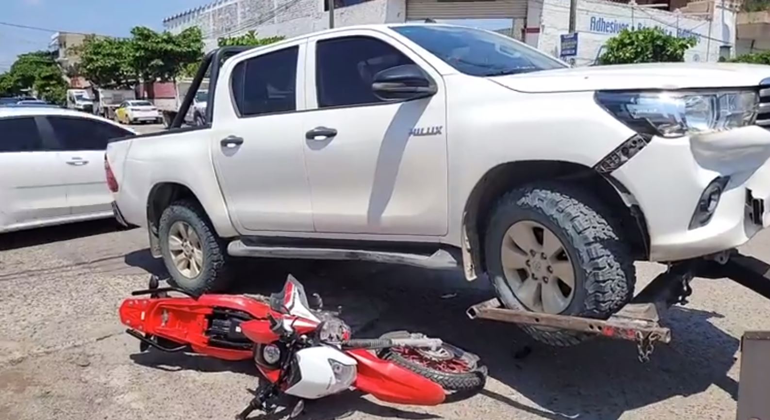 El vehículo impactó la motocicleta de la persona y la arrastró aproximadamente dos metros, por lo que el afectado tuvo que ser trasladado de inmediato para recibir atención médica.