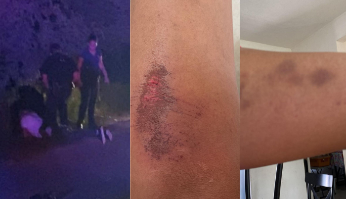 La usuaria que subió el material relata que después de esto, sus amigos empezaron a grabar y los policías con arma de fuego en mano comenzaron a golpearlos, sin ningún consentimiento.