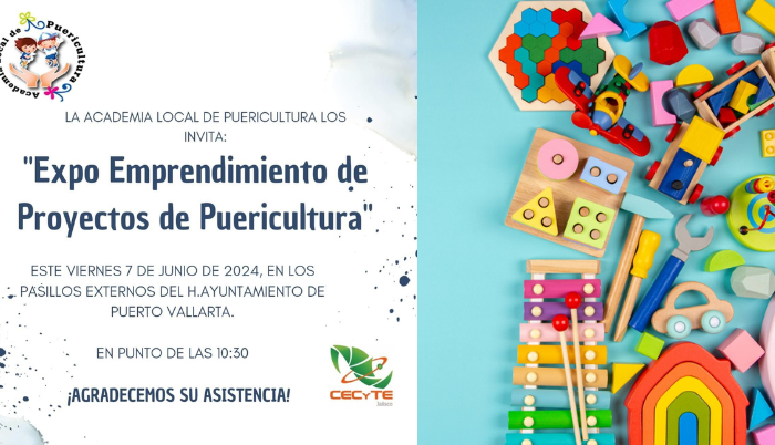 Este viernes, de 10:00 a 13:00 horas, los pasillos externos del Honorable Ayuntamiento de Puerto Vallarta fueron el escenario de la exposición “Puericultura Emprende 2024”. El evento, organizado por estudiantes de sexto semestre de la carrera de Técnicos en Puericultura del plantel CECYTEJ #7, presentó innovadores proyectos empresariales enfocados en servicios para niños.