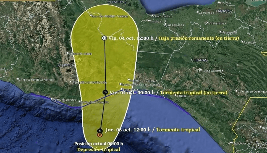 El Servicio Meteorológico Nacional advierte que la depresión tropical Once-E podría tocar tierra en Oaxaca esta noche. Se exhorta a la población a seguir las indicaciones de Protección Civil y prepararse para posibles afectaciones.