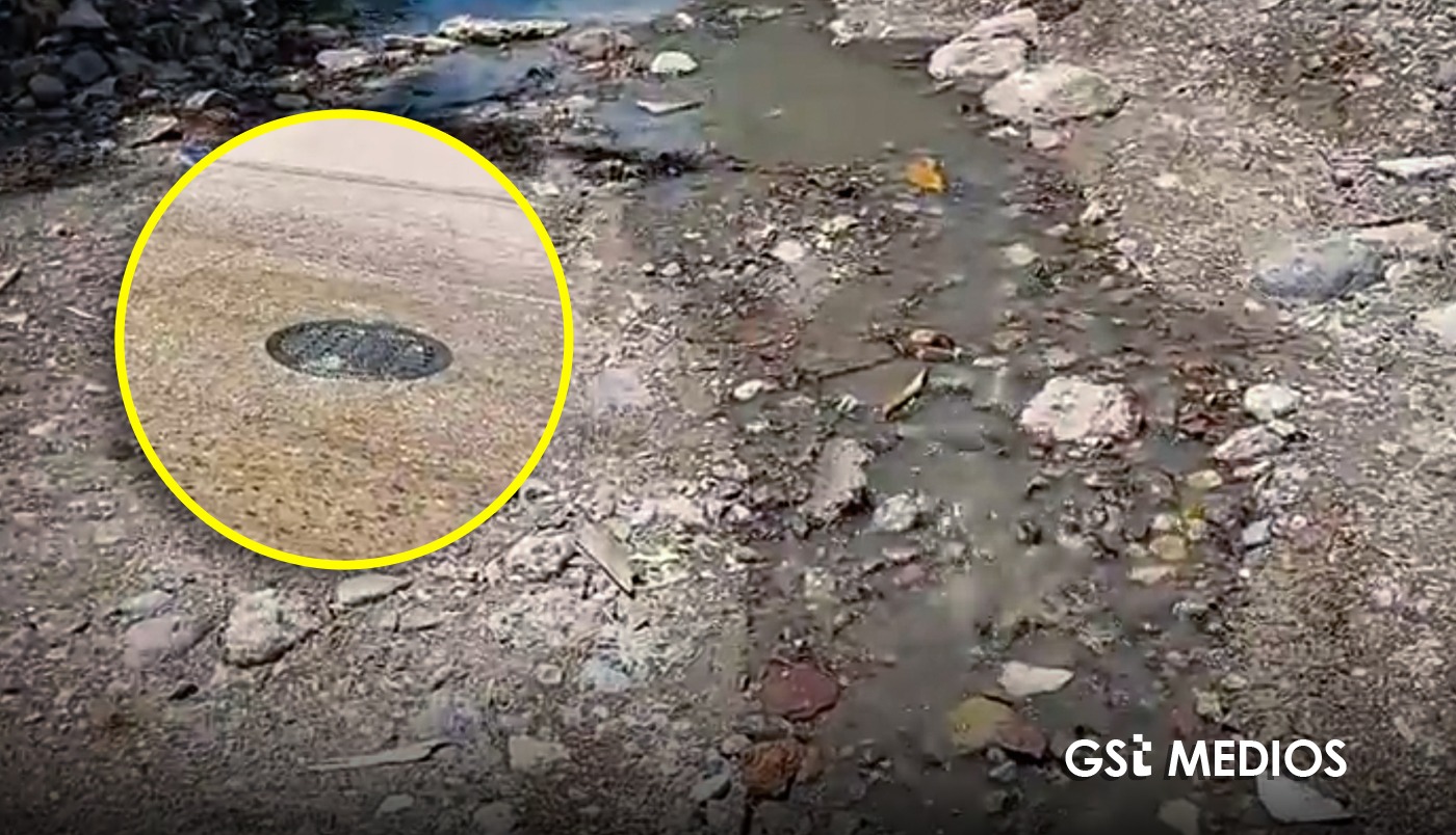 Tras un reporte ciudadano, el equipo de GST Medios acudió a los lugares, donde se percató que se trata de dos zonas diferentes pero que ambos sitios derraman aguas residuales con un fuerte olor, que fluyen libremente por la vialidad y ambos desembocan en un pequeño arroyo cercano.