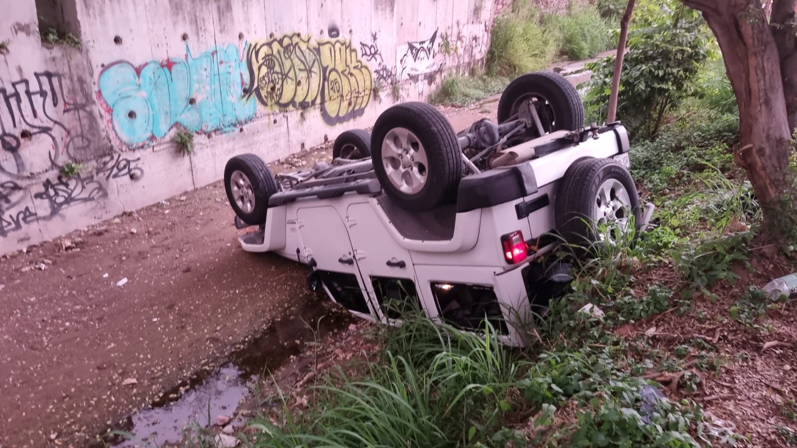 Al arribar al lugar, elementos de la Policía Municipal, Bomberos y Protección Civil constataron que se trataba de un Jeep 4×4 blanco que se encontraba con las llantas hacia arriba.
