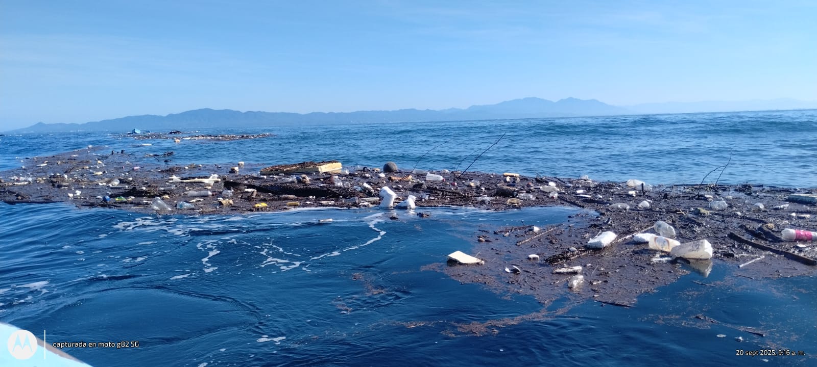 Esta sábado, la embarcación Marilyn Monroe zarpó al amanecer para retirar basura flotante en la Bahía de Banderas tras las lluvias recientes.