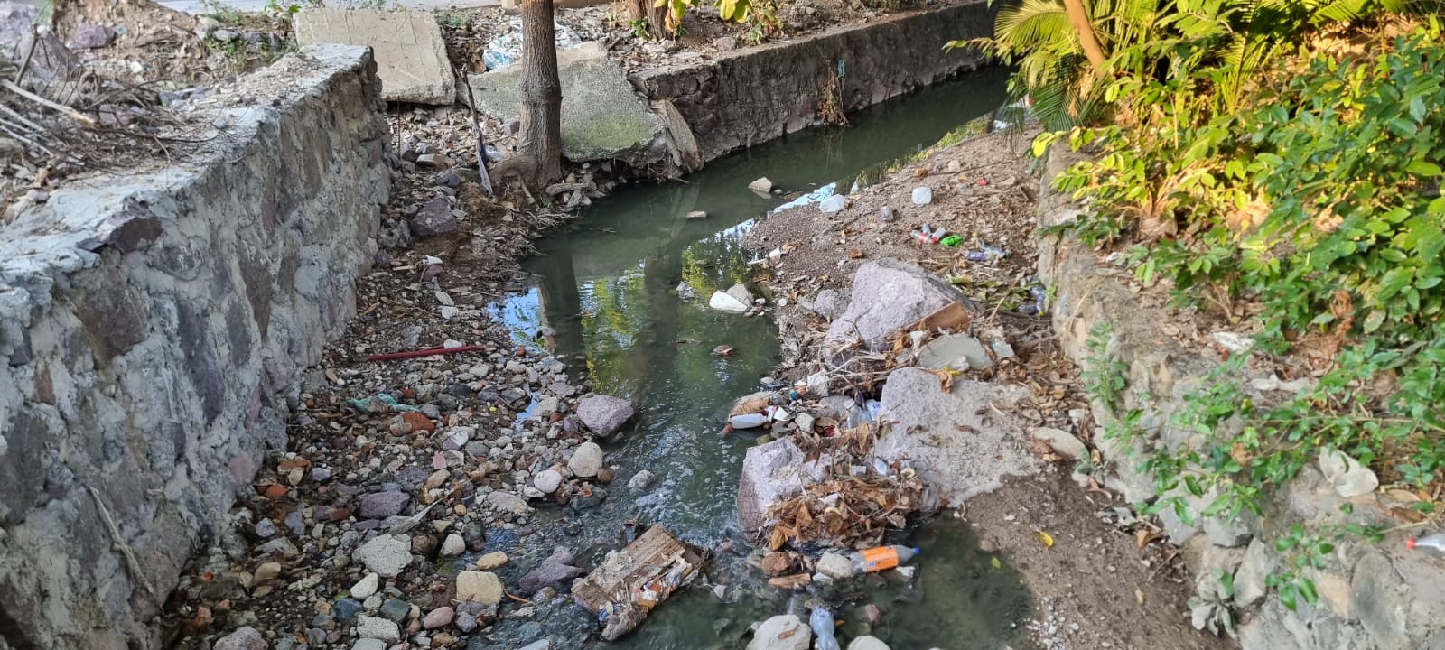 Vecinos de la colonia Del Toro denunciaron la presencia de un derrame de aguas negras en un canal ubicado entre las calles República de Brasil y 20 de Noviembre, zona donde actualmente se realiza una obra de pavimentación.