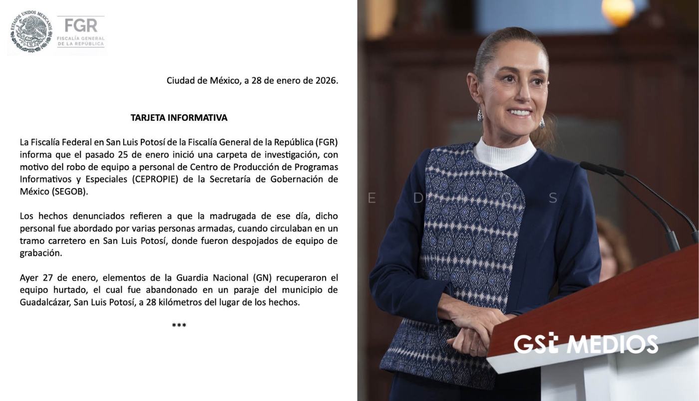 Los hechos ocurrieron durante la madrugada del 25 de enero, sobre la Carretera 57 Norte, a la altura del municipio de Guadalcázar, San Luis Potosí, donde hombres armados interceptaron al personal federal y los despojaron de cámaras, micrófonos y diverso equipo audiovisual utilizado para la producción de contenidos oficiales de la Presidencia de la República.