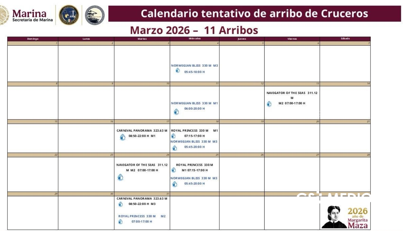Tras esta modificación, el calendario contempla ahora un total de 11 arribos durante el mes. No obstante, el Royal Princess sí mantiene otras visitas programadas a partir del 18 de marzo, a diferencia de los otros dos cruceros, que no tienen nuevas fechas confirmadas en lo que resta del mes.